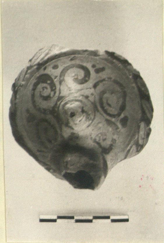 Description:   Only the upper reservoir remains; the end of the spout broken away. Conical top surmounted by knob.