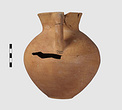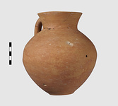 | Description: | Mended from eight pieces. Small parts of mouth and fragment from body missing. Surfaced. Buff clay. | |