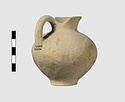 | Description: | Jug with Cutaway Neck. Intact. Surface damaged; rim inside, outside and handle painted once. Decoration faded, probaby the vase was covered over all with paint(?). | |