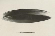 Description:   Single fragment preserving part of keeled rim and wall of a shallow bowl. One groove outside the rim and one each above and below keel.