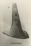 Description:   Tripod cooking pot. One foot and a little of the round-bodied bowl preserved. High foot, thin oval in section, tapering to a small blunt tip.