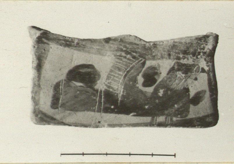 | Description: | The entire handle plate with some of the arching handle beneath it preserved. A siren, right. Red on neck, wing and tail. | |