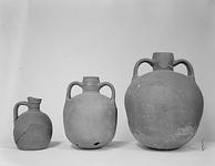 | Description: | One handle and most of neck missing; restored in plaster on basis of P 9655. Rounded bottom; plump, almost globular body; rounded shoulder; straight, narrow neck; two broad vertical strap handles. Coarse reddish clay with grits. Unglazed. | |