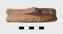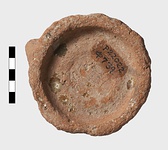 | Description: | Single fragment preserves foot and center of floor. Plate on heavy ring foot. Several concentric ridges on floor. Coarse reddish clay with grits. Vitreous glaze on interior, the color mottled green to yellow-brown. | |