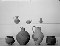 | Description: | Neck missing. Small jar with biconical body and flat base. The interior is a vertical cavity which does not follow the lines of the exterior profile. Soft buff clay, unglazed; handmade. | |