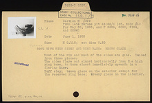 Description:   Most of the rim and much of the sides are gone. Mended from three pieces. The sides flare out almost horizontally from the high ring base, to turn almost immediately upwards in a flaring line.