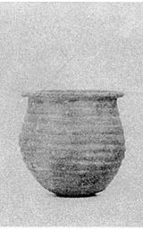 | Description: | Handleless cup. Intact. Round-bottomed cup; deep body with small everted lip. Body wheel-ridged. Hard reddish-brown clay with self-surfacing; unglazed. | |