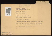 | Description: | From the floor of a plate. Alternating rosette and concentric circles. Hard red clay; orange-red glaze on inside. African red slip ware. Cf. P 27178, same vessel? | |