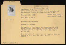 | Description: | Broken all around. The spines of two leaves are preserved in dark color against the ribbing in low relief; a bit of green relief is visible between the leaves at the top. From the side of a deep bowl of Megarian type as Tarsus I, fig. 132, no. 183. H.A.T. | |