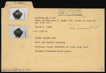 | Description: | Neck and handle missing. Globular squat lekythos on high ring foot. Chipped blackish-brown glaze. | |