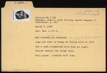 | Description: | Legs and ends of wings of flying Eros to left; a sash ornamented with dots at right. Relief contour for thigh only. Dull glaze; pinkish-buff clay. | |