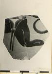 | Description: | Broken all around. From side of thin-walled closed pot. Left leg and hips of male figure running left. Added white and purple for details on loincloth or animal skin(?). Behind, parts of a tripod. Pinkish-buff clay. Unglazed inside. | |