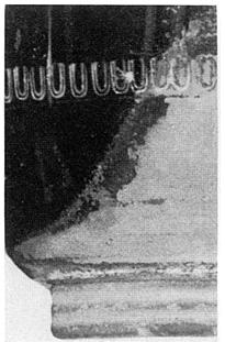 | Description: | Fragment from lower part of a squat lekythos (tall type) with grooved foot and pairs of vertical ribs on side; a row of impressed ovolos beneath. Good black glaze, somewhat worn; the vertical face of the foot and the resting surface reserved. Beneath, concave moulding, glazed; center beneath reserved. | |