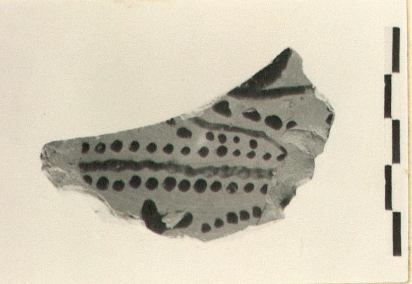 Berries and leaves in black glaze on inside. Outside unglazed.