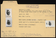 | Description: | Lower part of a twisted handle with a mask at lower attachment. Pinkish-buff clay. | |