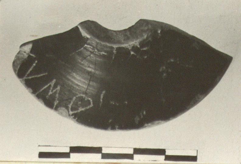 | Description: | Half of kylix foot. Last letters of the patronymic preserved: <graphic> Buff clay. | |