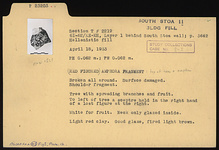 | Description: | [Shape originally identified as amphora.] Broken all around; surface damaged. Shoulder fragment. Tree with spreading branches and fruit. To left of tree, a scepter held in the right hand of a lost figure at the right. White for fruit. Neck only glazed inside. Light red clay. Good glaze, fired light brown. | |