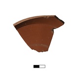 | Description: | Broken all around. Part of flat bottom and lower walls preserved. Band of wheel-run grooves on floor. Light red clay. Orange-red glaze. Samian A ware. | |