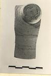 | Description: | Two joining fragments preserve profile. Slightly domed lid, with flat-topped knob and plain rim. Dipinto in black near rim; two lines, of which the first is complete, second probably so: <graphic> Buff clay. No glaze. | |