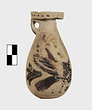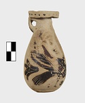 Description:   Pear-shaped alabastron. Intact except for hole in bottom, evidently scraped on inside. Small vertical handle, just below rim and attached to it.