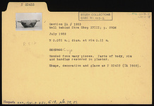 | Description: | Mended from many pieces; parts of body, rim and handles restored in plaster. Shape, decoration and glaze as P 23432 (ΣΑ 1922). | |