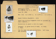 | Description: | Three non-joining fragments from an oinochoe or small amphora. Decoration in panel: a bird to right. a) Some of bird's head. b) Body. c) Tail. Red for beak and some of feathers. Buff clay and surface. | |