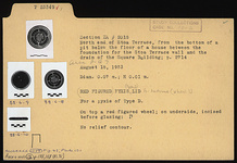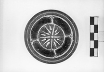 | Description: | For a pyxis of type D. On top a wheel. On underside, incised before glazing (Π): <graphic> No relief contour. | |