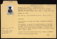 | Context: | Protogeometric grave to N.W. of Stoa Pier 19 (ΣΑ 5). Imbedded in earth along outer edge of east side slab. | |