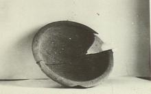 | Description: | Large spouted basin. Mended from two pieces. Most of spout missing. Slightly thickened flaring rim, ring base. Very coarse gritty clay with large bits. Unglazed. | |