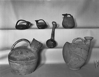 | Description: | Mended from countless fragments. Most of rim and sides missing, the handle on the upper surface beside the spout is preserved. The shape resembles that of the early "duck" vases of the Cycladic period. Ring base. Greenish clay, unglazed, with red core. | |