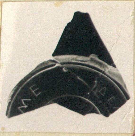 | Description: | Two joining fragments from floor of stemless cup. Incised rays on floor; underside lightly moulded. Inscribed on underside: <graphic> Excellent black glaze, all over. | |
