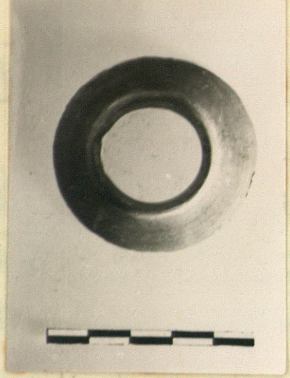 | Description: | Intact. In shape like a broad-brimmed straw hat lacking its top. Buff clay. Unglazed, but neatly surfaced. | |