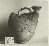 | Description: | Mended from countless fragments. Most of rim and sides missing, the handle on the upper surface beside the spout is preserved. The shape resembles that of the early "duck" vases of the Cycladic period. Ring base. Greenish clay, unglazed, with red core. | |