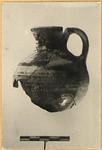 | Description: | Mended from many pieces; about half the neck and rim, and a fragment from the shoulder and neck of the lower wall with all of the base, missing. Globular jug with flaring neck mouth; handle from rim. Decoration: on reserved band around body at point of greater diameter, zigzag between pairs of glazed bands. Hard pinkish fabric. Grayish-black glaze, somewhat metallic (brown for decoration) in part worn off. | |