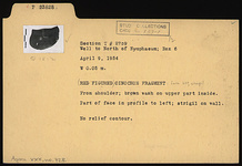 | Description: | From shoulder. Brown wash on upper part inside. Part of face in profile to left; strigil on wall. No relief contour. | |