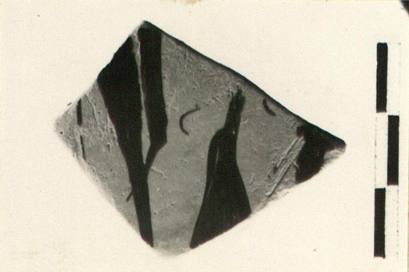 | Description: | From side of cup. Inside, a little of a plain reserved border of the medallion. Outside, parts of two figures: the legs of a standing nude male, and (at left) a little of a draped figure. No relief contour. ADDENDA Sub-Meidian cup group [JDB, Sept. 1955]. | |