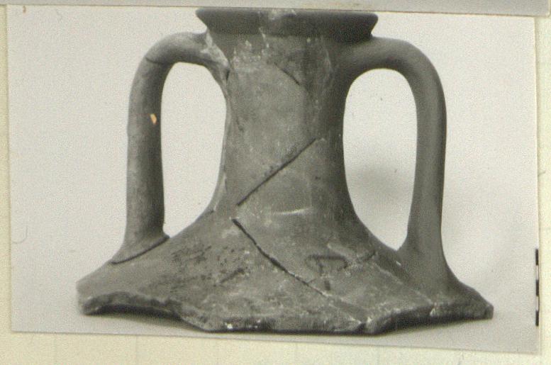 | Description: | Two joining fragments from base of neck and shoulder. Letter in red on each side: a. on shoulder, upper part of of ligature, rho, pi (?): <graphic> b. on neck, eta: <graphic> Pinkish-buff micaceous clay. ADDENDA Neck and rim fragments added; other handle restored [Dec. 1958]. | |