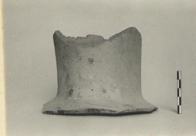 | Description: | Lower half of neck and edge of shoulder preserved. Graffito on shoulder, tau, upsilon and three strokes: <graphic> Light brown, micaceous clay. A smear of red on the neck. | |