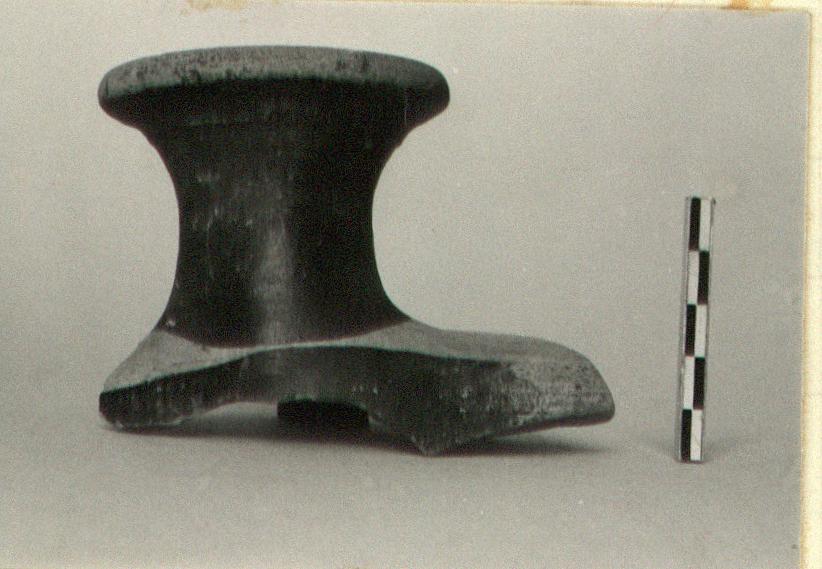 | Description: | From a large duck askos, spout and a little of shoulder preserved. Dirty reddish-brown clay covered with light cream slip; dull black glaze on neck and outside of rim and for a broad band around shoulder. Two non-joining wall fragments left in tray, along with other askos spouts. East Greek? ADDENDA From this same deposit the top of a jar also East Greek probably (P 26363). Fabric not just the same, but related. Wavy line around top of neck, drawn in below flaring rim [VRG]. | |