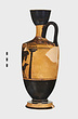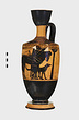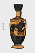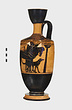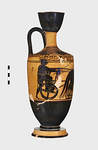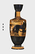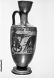 Cf. the people and the dog on Haspels (1936), pl. 24, 2a (also the chariot and horses though not so completely). For the profile of the foot, cf. Haspels (1936), pl. 26,1, but the mouth differs. For the foot of this and of the fountain house lekythos (P 24106), cf. also Jacobsthal, O., pl. 54a (for the fountain house) and pl. 54b (for this piece).