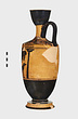 On shoulder, tongues and palmettes with dots (three and two); lotus buds next handle. Key right above picture; glazed line as ground line and a couple of red lines below at the top of the glazed wall.
