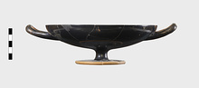Description:   Mended from several pieces; fragments missing. Thin foot strongly thickened at the edge; a groove around the upper surface.