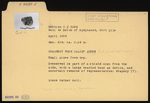 Preserved is part of a shield seen from the side, with a large bearded head as device, and uncertain remains of representation: drapery(?).