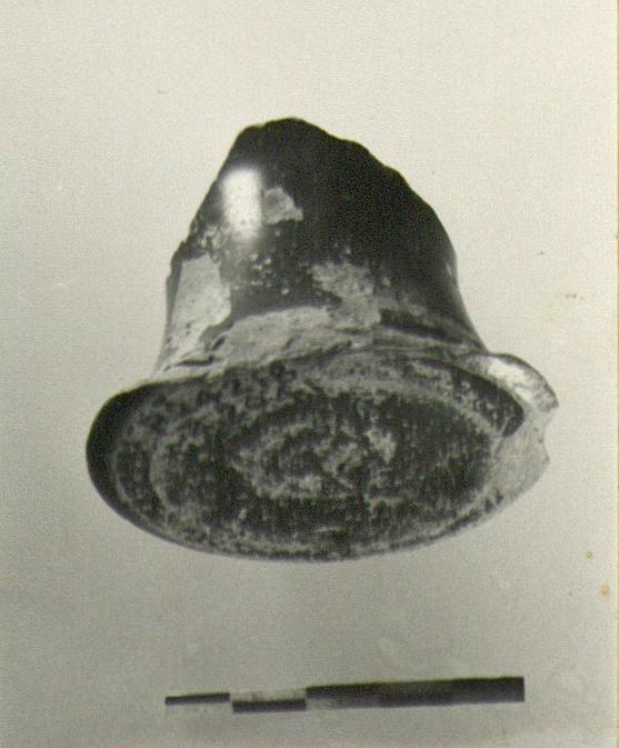 | Description: | Base and part of wall preserved. Flat base projecting beyond concave profiled wall. Gray clay; good black glaze outside, worn inside. For shape, cf. P 16857 (Ζ 1722). | |