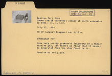 | Description: | Some very poorly preserved fragments of a three-handled jar, the fabric so flaky that it cannot be separated from the clay found in it. Remains of red glaze. | |