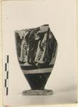 | Description: | Part above shoulder, upper wall piece and foot fragments missing. General type, as far as preserved, as P 24316 (ΣΑ 2526): This is the characteristic general type for the large proportion of the lekythoi from this group. Bell mouth with variations in height and spread; lip usually reserved, occasionally glazed. Disk foot of varying thickness; below picture either one or two reserved lines. Added colors more or less well preserved. Only substantial variations are noted in the following descriptions. Scene: Dionysos, holding horn right, between women. Cf. P 24521. | |