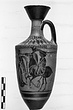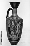 Description:   Foot missing. General type as P 24316 (ΣΑ 2526): This is the characteristic general type for the large proportion of the lekythoi from this group. Bell mouth with variations in height and spread; lip usually reserved, occasionally glazed. Disk foot of varying thickness; below picture either one or two reserved lines. Added colors more or less well preserved. Only substantial variations are noted in the following descriptions.