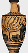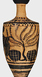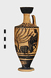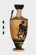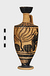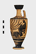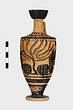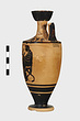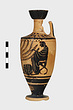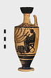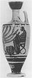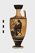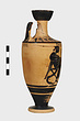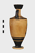 | Description: | Part of handle missing. General type as P 24316 (ΣΑ 2526): This is the characteristic general type for the large proportion of the lekythoi from this group. Bell mouth with variations in height and spread; lip usually reserved, occasionally glazed. Disk foot of varying thickness; below picture either one or two reserved lines. Added colors more or less well preserved. Only substantial variations are noted in the following descriptions. Shoulder: dots above dotted lotus bud (skipping two). Above scene: double row of dots. Scene: two women seated under a tree picking fruit; two round baskets in front of them. The subject occurs on a black figured lekythos in Vienna (739, 6, CVA. Univ. pl. 6,11) attributed to Class of Athens 581; also on one at Eleusis (photo J.T.). Cf. also skyphos fragments from the RRCS Hesperia 15 (1946), pl. 47:97. | |