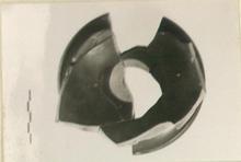 | Description: | Part of the large carefully made base for a black figured skyphos, probably from the White Heron (Theseus painter) workshop. Broadly projecting foot with convex profile (as e.g. CVA Robinson, fasc. 3, pl. 1). Ring above foot, painted red; around lower wall, reserved zone with alternating red and black short tongues. No other fragments of just this shape and style were noted. | |