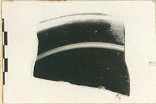 Description:   Small piece of rim and floor; profile not complete. The rim narrower and more sharply curved than in the two preceding; exterior neatly profiled.